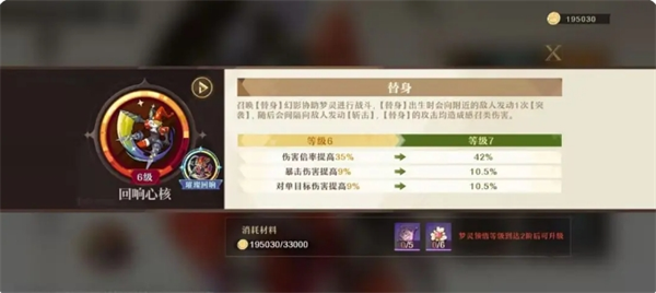 回响核心:游戏等级提升后一定要先看能升级了吗,每一级的属性加成还是很客观的。而且材料也不是很缺,前期拉满即可。三只梦灵一队,等级和核心都拉满是完全够得。