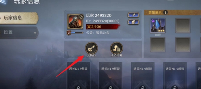 2、跳转至玩家信息界面后,找到下方的【兑换码】按钮。
