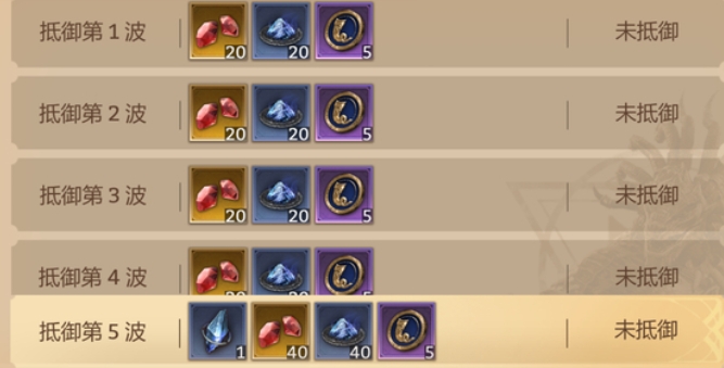 2、玩家在抵御魔潮的波数后即可获取相应奖励,首次抵御每个波次后都能领取对应的奖励。