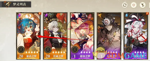 2、在梦灵列表页面,点击需要升级的梦灵进入;