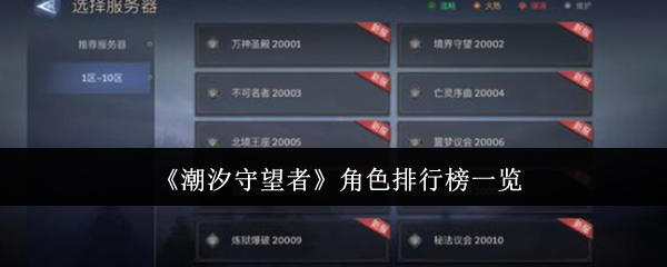 潮汐守望者角色排行榜什么样?潮汐守望者里面角色还是比较的多的,那么大家在培养的视乎就需要知道下培养的一些思路了,如果可以知道下排行榜的话就会简单很多了,那么大家要是好奇的话下面一起来看看吧!