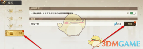 3、随后在设置页面下滑点击其他,然后选择服务-绑定手机-验证;
