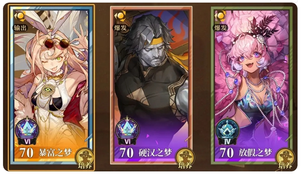 考虑到获取难易度以及通用性,本次以第一个配队带来攻略,即暴富放假硬汉三人连珠队。