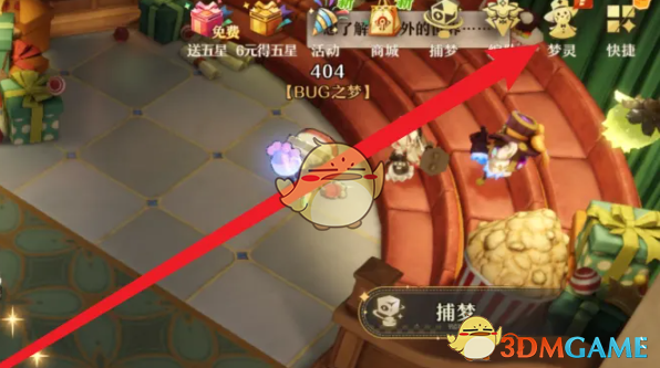 1、打开游戏进入首页面,点击右上角的梦灵图标