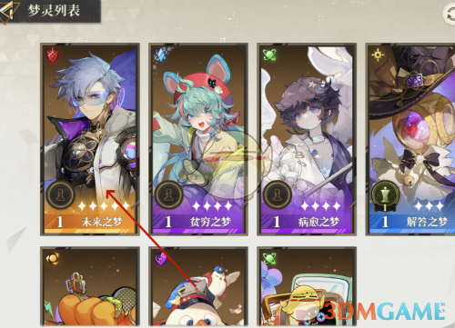 2、进入到梦灵列表后选择需要升级的梦灵,进入到梦灵详情页。