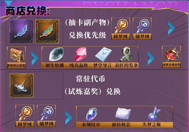 商店兑换抽卡副产物—朦胧睡意,兑换优先级抽卡券>美梦绵绵>其他材料