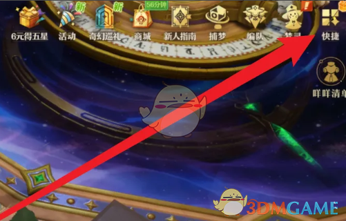 1、首先我们需要进入到游戏主界面,在右上角的位置点击快捷图标。