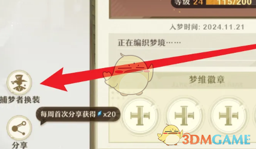 3、继续在左侧点击下方的捕梦者换装图标进入。