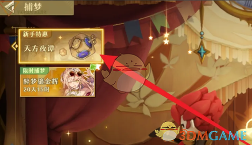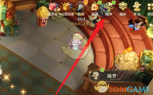 1、首先我们需要进入到游戏主界面,在右上角的位置点击捕梦进入。