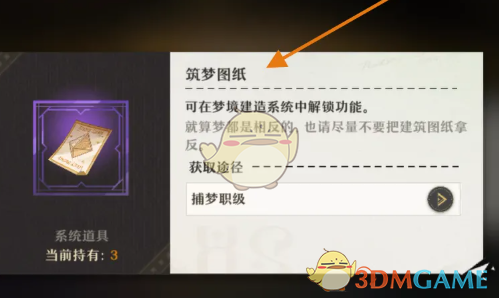 4、即可看到就是获赠的筑梦图纸,可用于梦境建造系统中解锁功能。