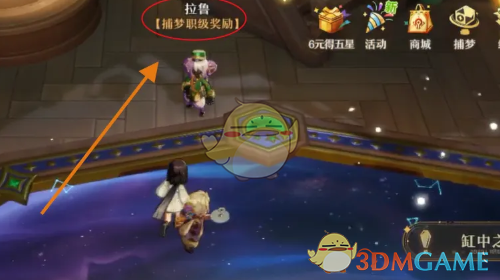 2、进入到拉鲁界面,在右下角的位置点击捕梦职级奖励。
