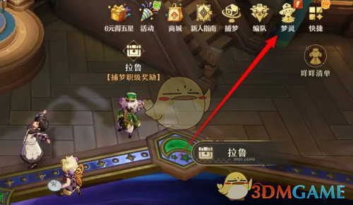 1、首先我们需要进入到游戏主界面,在右上角的位置点击梦灵图标进入。