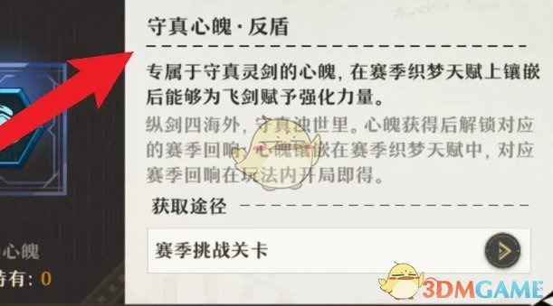 守真心魄反盾是无尽梦回游戏内的强化道具,这个道具可以给织梦的天赋上镶嵌,然后给飞剑赋予强化的力量,这个道具需要挑战赛季关卡来获取的,想必玩家们对这个道具的获取方法还不是太清楚,下面就让小编给大家带来《无尽梦回》守真心魄反盾获得方法,感兴趣的继续往下看看吧。
