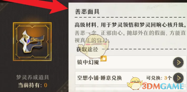 答:挑战镜中幻魇关卡即可获得善恶面具,也可以在空想小铺内兑换获取。