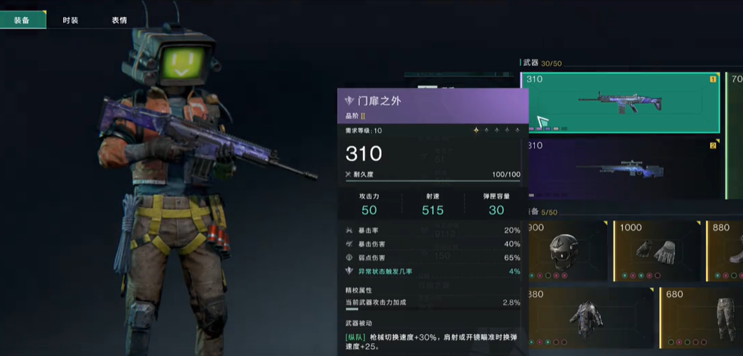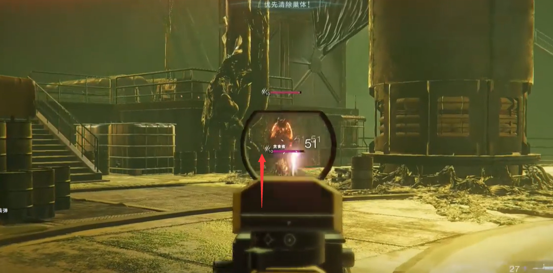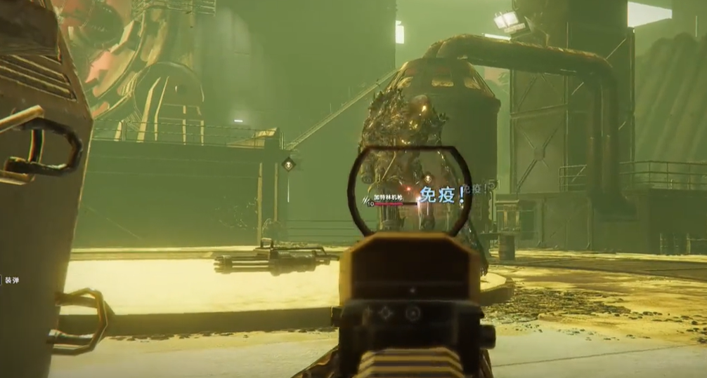 1、首先武器选择【门扉之外】,然后站在远处攻击BOSS手上的加特林;