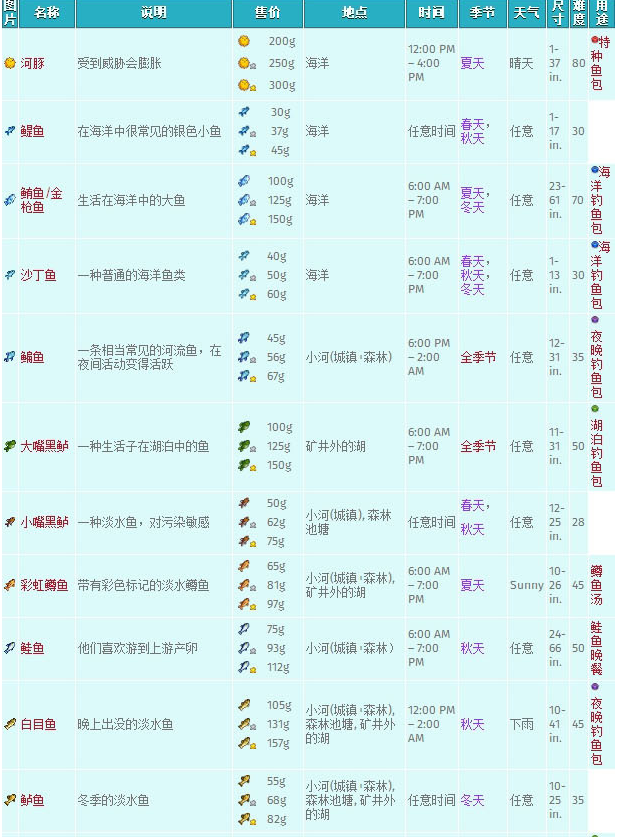 星露谷物语鱼类分布图