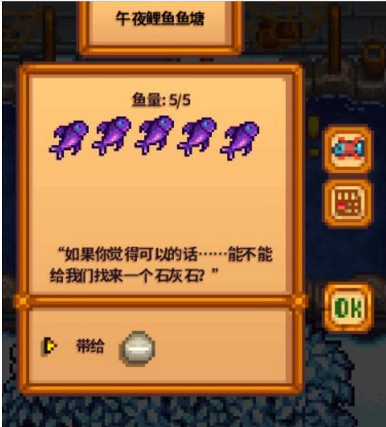 5、鱼塘里的鱼会产出鱼籽和一些随机物品。鱼类会繁衍,直到繁衍至鱼塘容量的最大值;唯一的例外是虎纹鳟鱼,这种鱼只会产卵,不会自动繁殖。