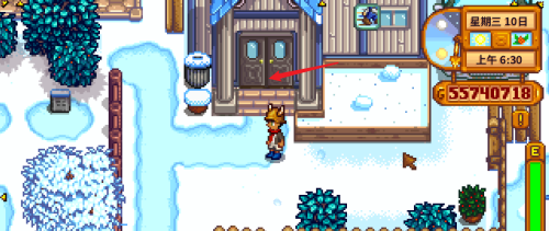 在开放时间段内,鼠标右击镇长庄园的大门,进入室内。
