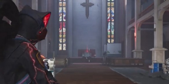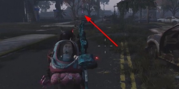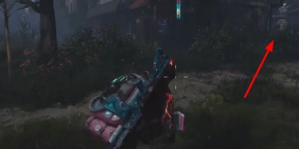 3、向着右侧的教堂方向前进,右侧围栏处可以找到一个武器箱。