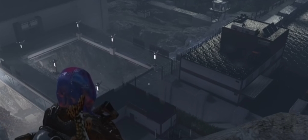3、来到建筑内后许多需要走过连廊,这时会出现拿着加特林机枪的精英怪,利用连廊上的两根柱子拉扯击杀掉。