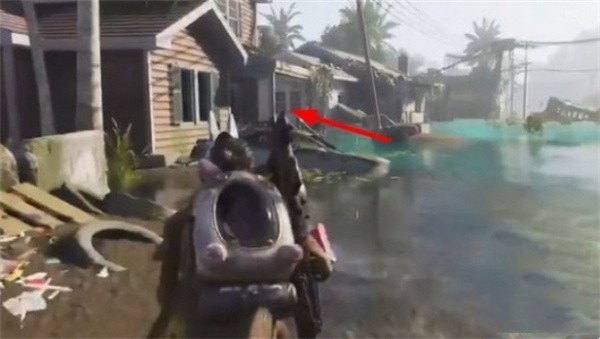 2、接着顺着大路向左转能够找到一个被水淹没的房子。