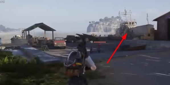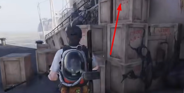 3、上船之后需要从图中的这个箱子上去,其他地方是没法走的。