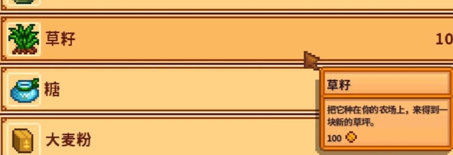 1、进入游戏后,打开地图找到并前往皮埃尔的商店。在和皮埃尔对话的时候,选择购买,再商品栏找到草籽点击购买。