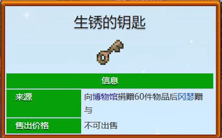 2、接着在小镇中向博物馆捐赠60件物品能够获得生锈的钥匙。