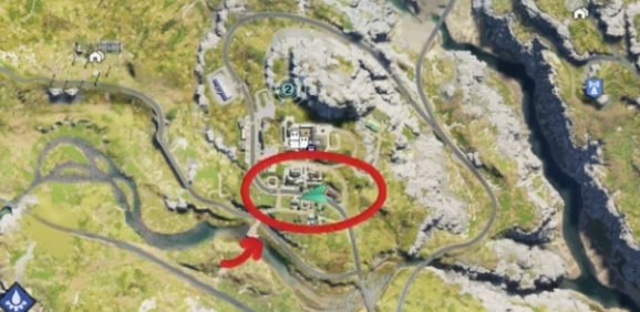 2、来到箭头所指的建筑,在室外水池中能够找到一个武器箱。