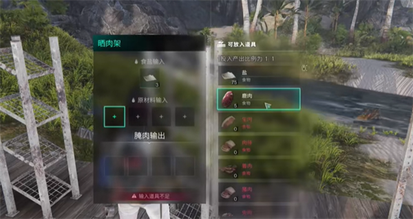 玩家可以使用牛肉制作成腌肉,可以更好的进行食物储存。