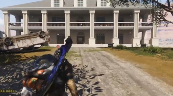 2、到达目的地后,可以看到一个白色的庄园。