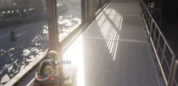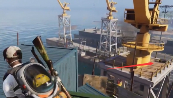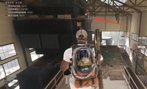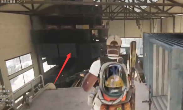 5、然后按照提示进入下图工厂位置,接着使用斜着的木板一路向上