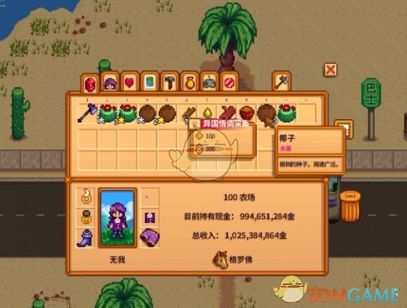2、也可以在周一的时间前往绿洲商店,花费400金购买获得椰子;