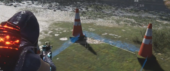 2、接着在目的地能够看见路障围成的正方形区域,直接进入。