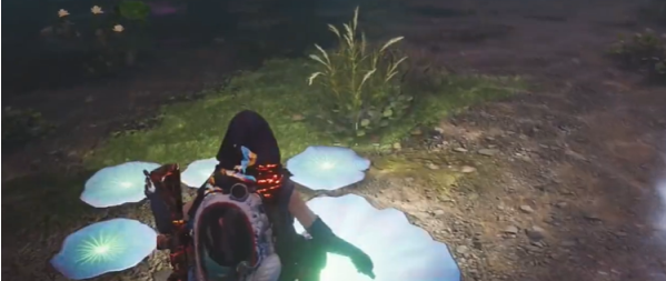 2、接着到达之后,就可以看到面前的荷叶,需要玩家踩在这个荷叶上。