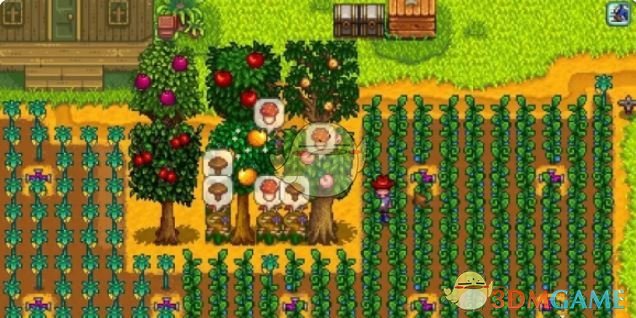 2、种植蘑菇树:在秋季,将蘑菇树种子种植在农场的合适位置。蘑菇树在秋季有5%的几率自然生成。