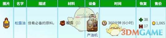 2、制作松露油:将松露放进产油机制成松露油,售价为1,065金。但注意铱星品质松露直接卖更划算。