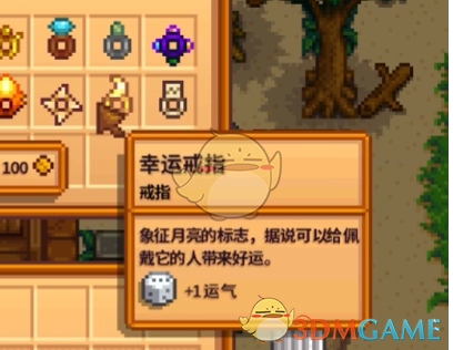 1、佩戴幸运戒指:可以增加1点运气,在河流的冒泡区域通过淘金找到它,也可通过打破骷髅洞穴中的箱子和桶来获取。