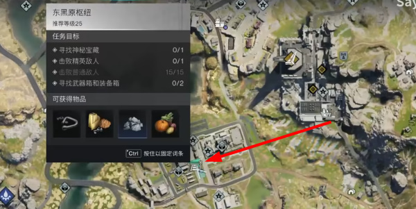 2、达到下图所示的异常宝箱点位置,就可以看到手套了。