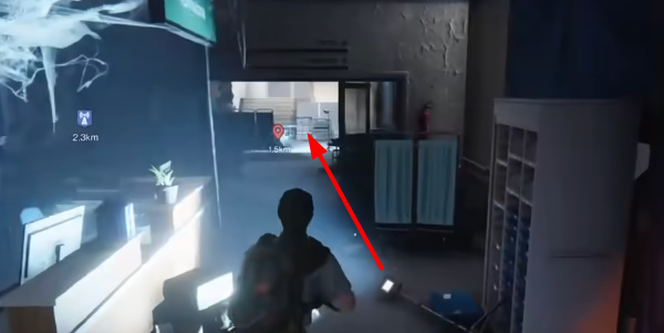 3、达到小镇口左侧的超市后,从下图所示的路线上楼。