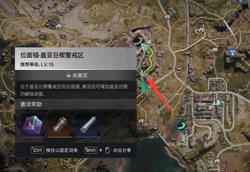 1、进入游戏后打开地图,前往盖亚巨楔的警戒区的门口