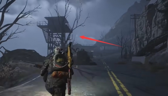 5、然后来到瞭望塔位置后,需要爬到顶端,可以看到下方的房顶上有一个宝箱