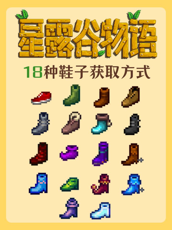 以上就是小编整理带来的星露谷物语鞋子怎么获取,18种鞋子获取方式,更多相关游戏攻略,请关注易采游戏网!