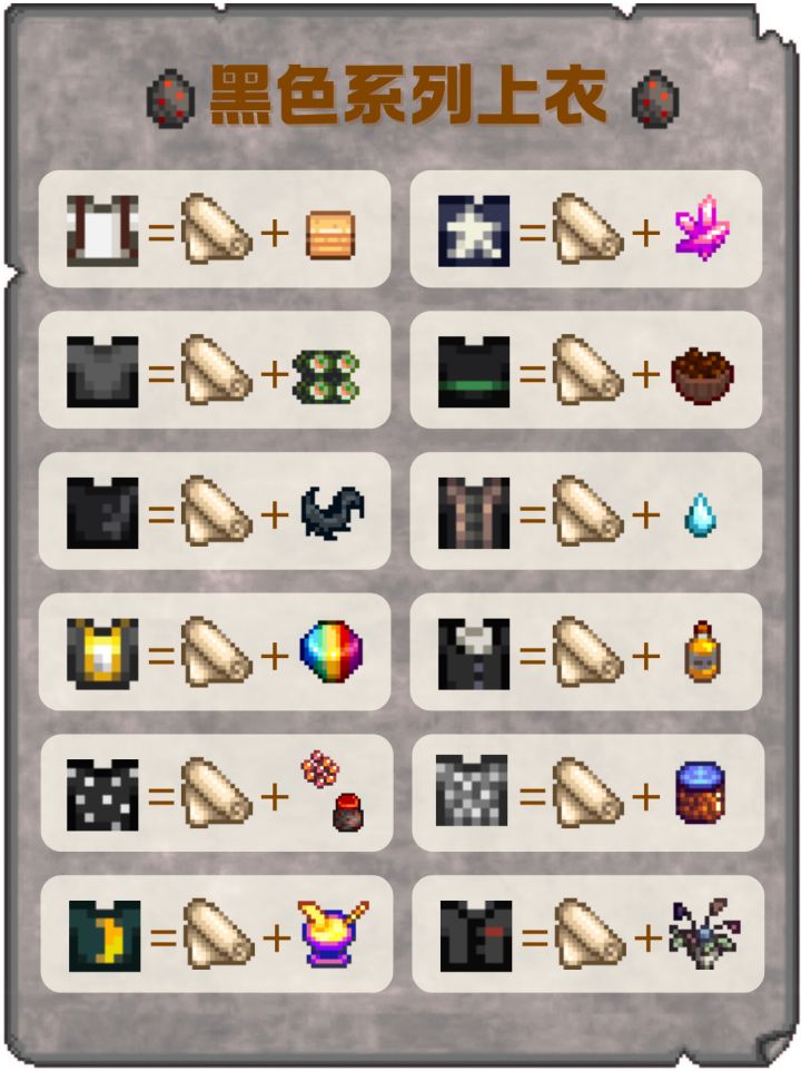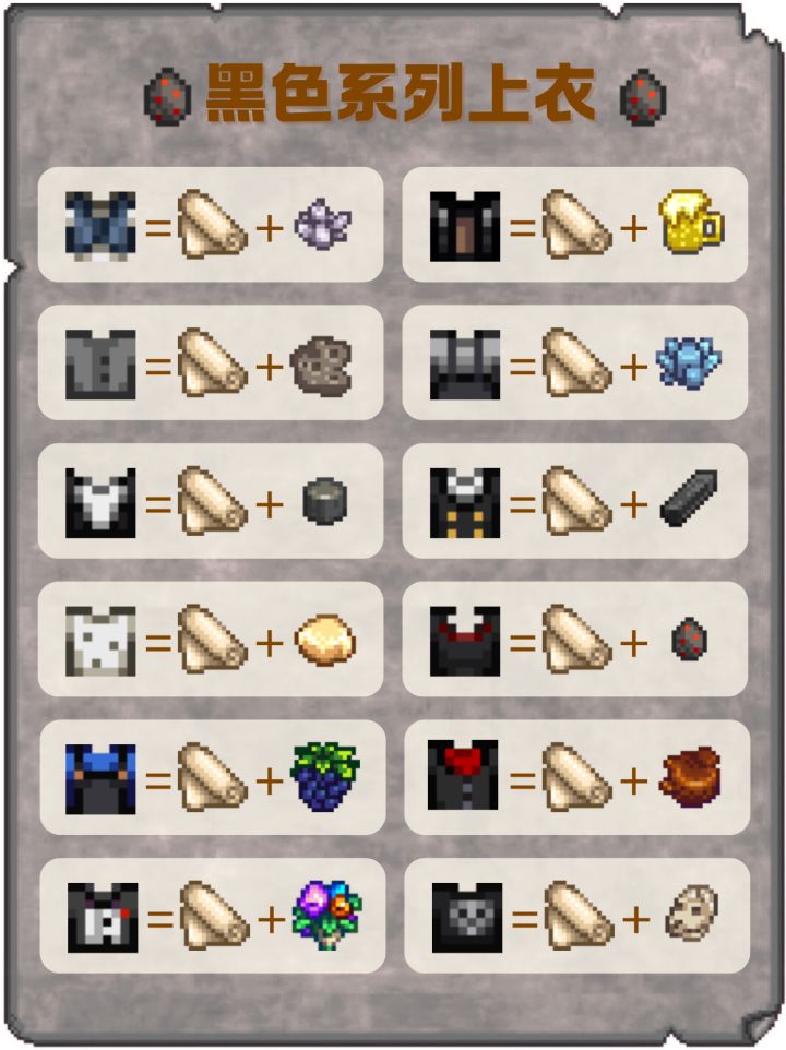 《星露谷物语》黑色系列上衣配方: