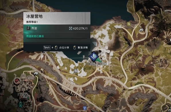 1、进入游戏后打开敌人,前往冰屋营地(3384,6215)处