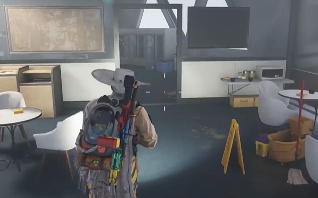 3、来到下图位置后,继续往前走进入营地的厨房