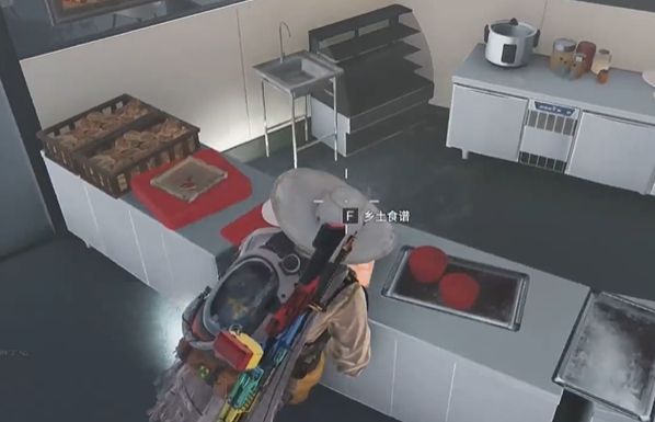 4、这时可以在厨房的柜子上看到食谱,点击拾取即可获得雪茸蛋炒饭