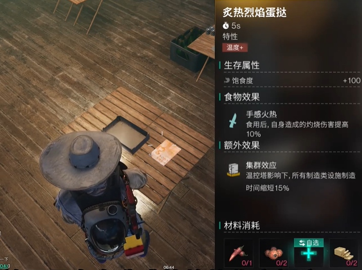 4、炙热烈焰蛋挞,食用后自身造成的灼烧伤害提高10%