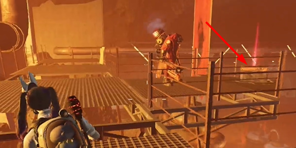 4、然后将视角转向东北方,乘坐电梯下楼。
