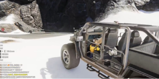 2、到达后,召唤载具开车往山下走。